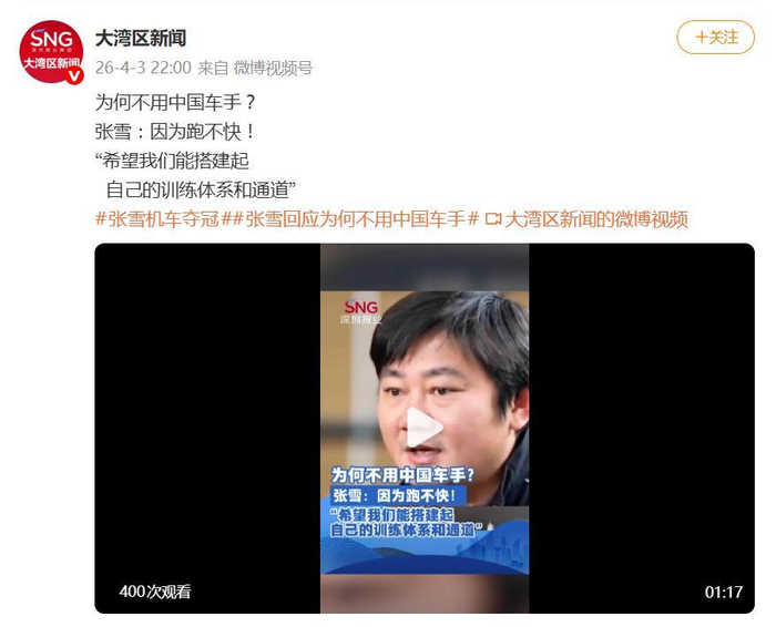 据4月3日晚间报道,WSBK(世界超级摩托车锦标赛)中国车队负责人张雪的一句大实话,在车迷圈里炸开了锅。当被直接问到为何不启用中国车手时,他的回答直白又坦率,毫不避讳:“因为现在的车手跑不快。”