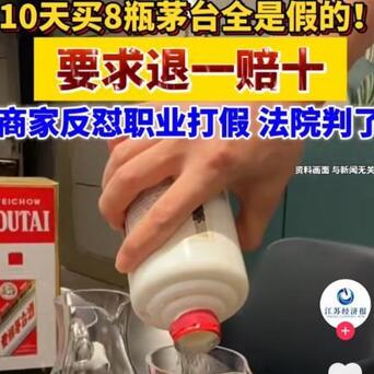 湖南长沙,男子买了2瓶飞天茅台,回家一喝感觉不对劲,他没去退,反而在10天内接着又买6瓶,然后就市监局举报,经鉴定这8瓶酒均为假酒。这下男子底气十足地找商家要求退一赔十。商家直接拒绝,他认为男子直到鉴定时酒都未开封,就是别有用心的职业打假人,通过知假买假专门讹人!男子看协商不行,一纸诉状将商家告上法庭。法院判决很意外!
